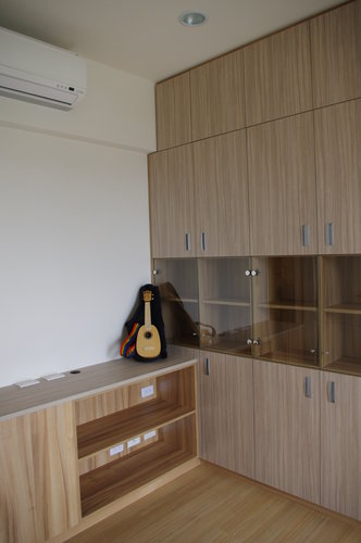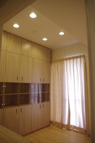 大面積的採用了日本胡桃色的素材,幫原本較刻板的書香氛圍