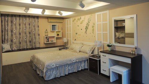 效果,取代傳統的床頭櫃,營造出更大空間的視覺效果