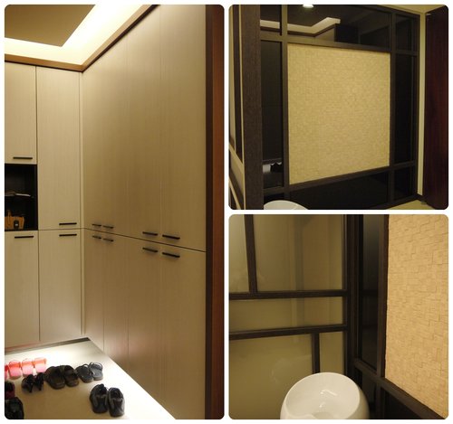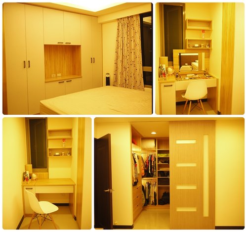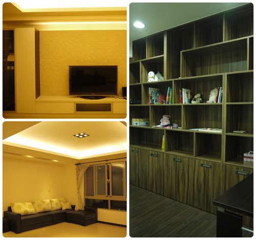 。台中 - 周公館。 今天跟大家分享的案子是台中 - 周公館 。 玄關設計師規畫了大量的收納櫃,方便收納一家人的鞋子及一些物品,還至做了一個造型屏風來區隔空間。 客廳電視櫃以簡單大方造型為主,電視牆用不同材質表現造型,天花板跟電視牆都以間接照明的方式營造整體氣氛。右邊的圖是將一整面牆都規劃成書櫃,可收納大量藏書。 餐廳在餐桌的左右牆都有規劃收納櫃,就近放置電器及一些餐盤、乾糧等,天花板以間單的造型搭配間接照明,營造溫馨的用餐空間。 臥室床尾的牆面規畫了衣櫥,櫃子中間預留放電視的空間,可以躺在床上舒服的看電視。右上及左下的兩張圖是房內的小空間規劃成化妝台的擺放空間,充分利用到每一個小空間。右下的圖是更衣室的部分。