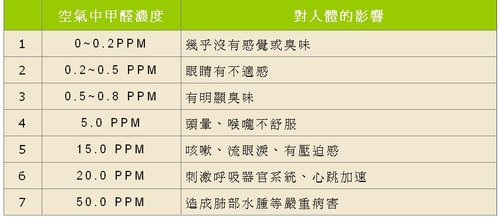 ◎ 依環保署屬空字第0940106804號30/12/94對室內空氣品質建議值:0.1PPM以下